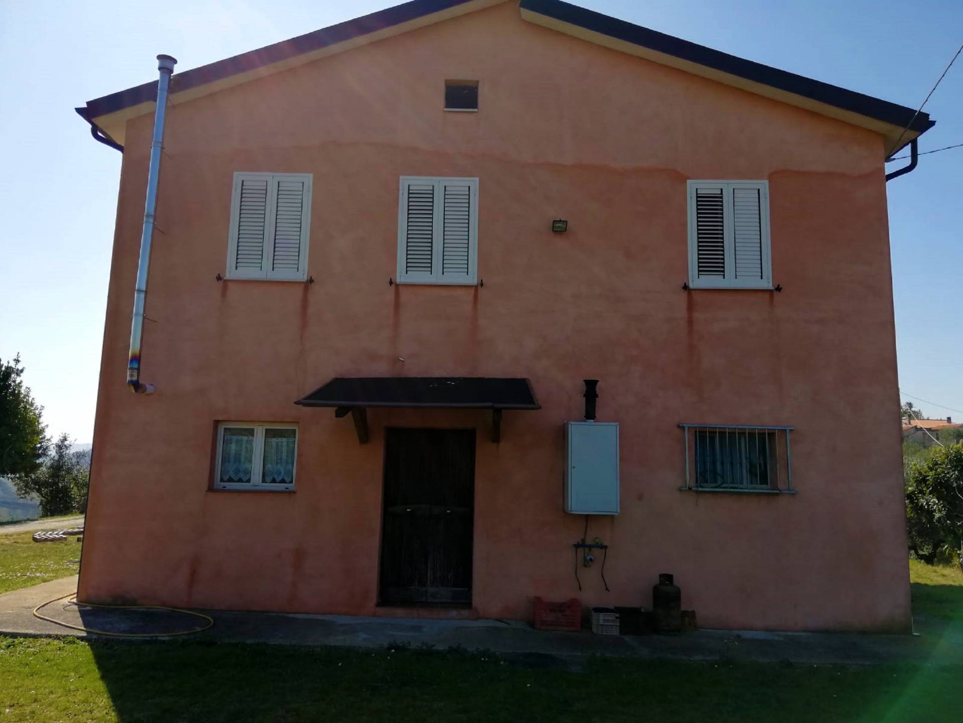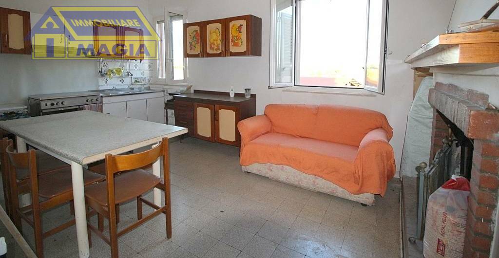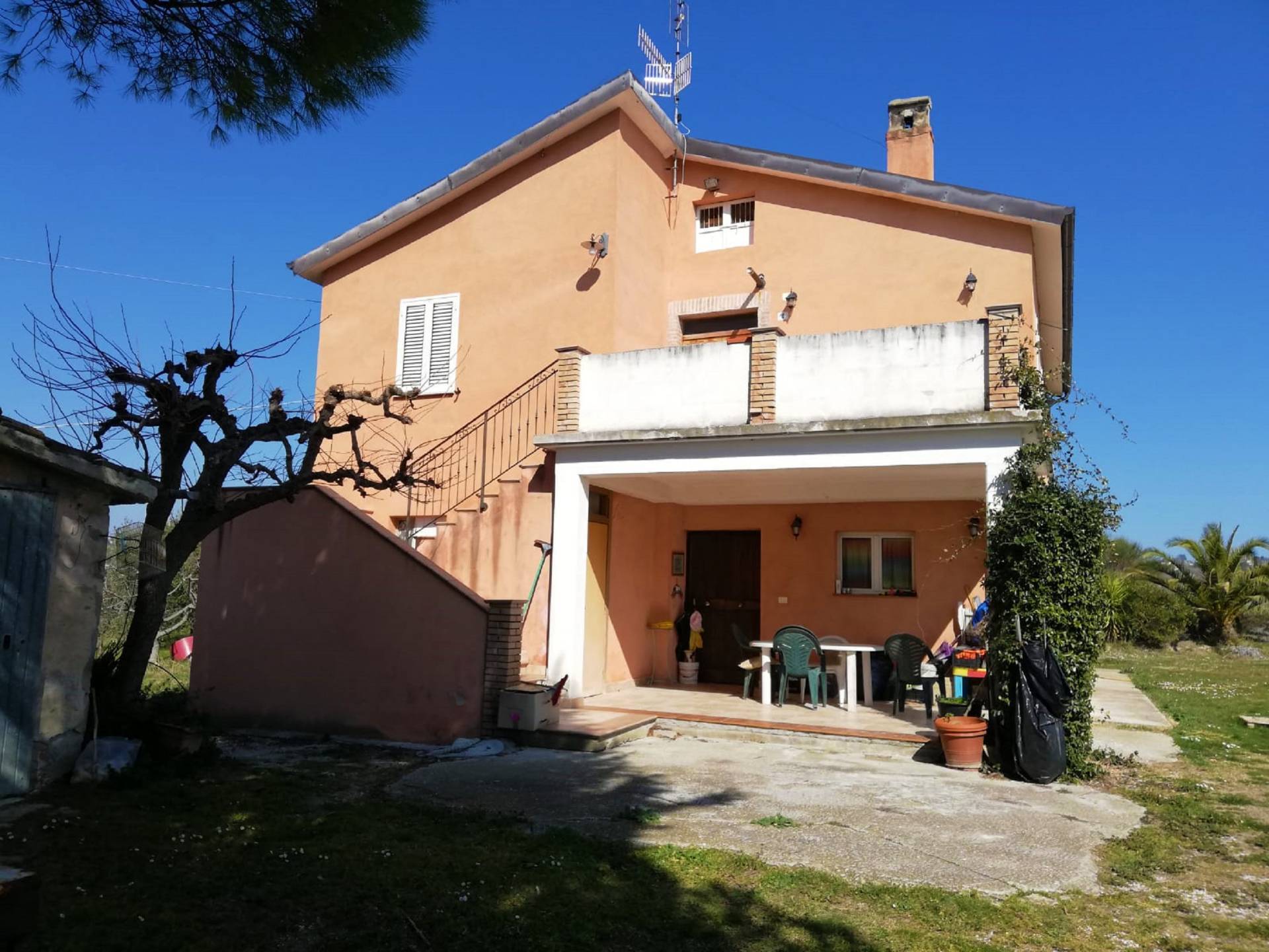 viene venduta insieme ad un terreno agricolo semi-pianeggiante delle dimensioni di 31000 mq con 140 piante di ulivi e svariati alberi da frutta, un capannone con destinazione rimessa di 200 mq circa ed un garage di 22 mq.