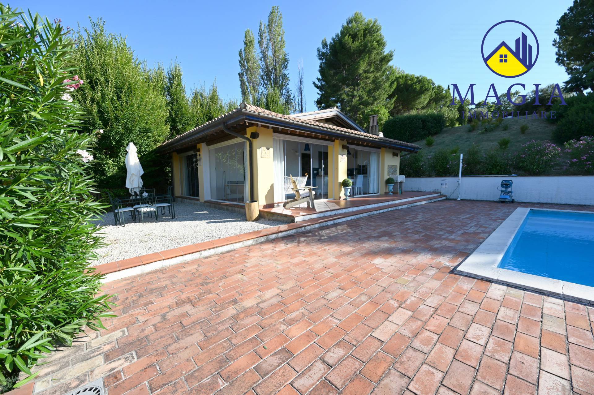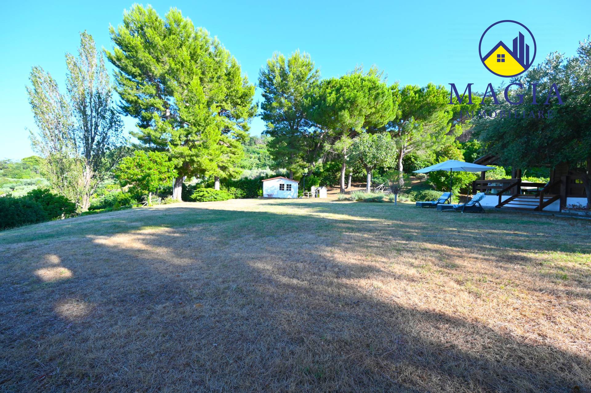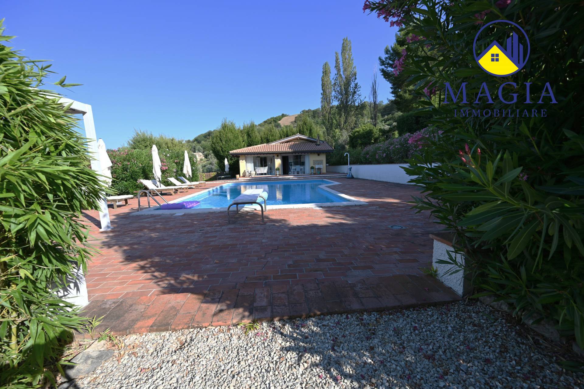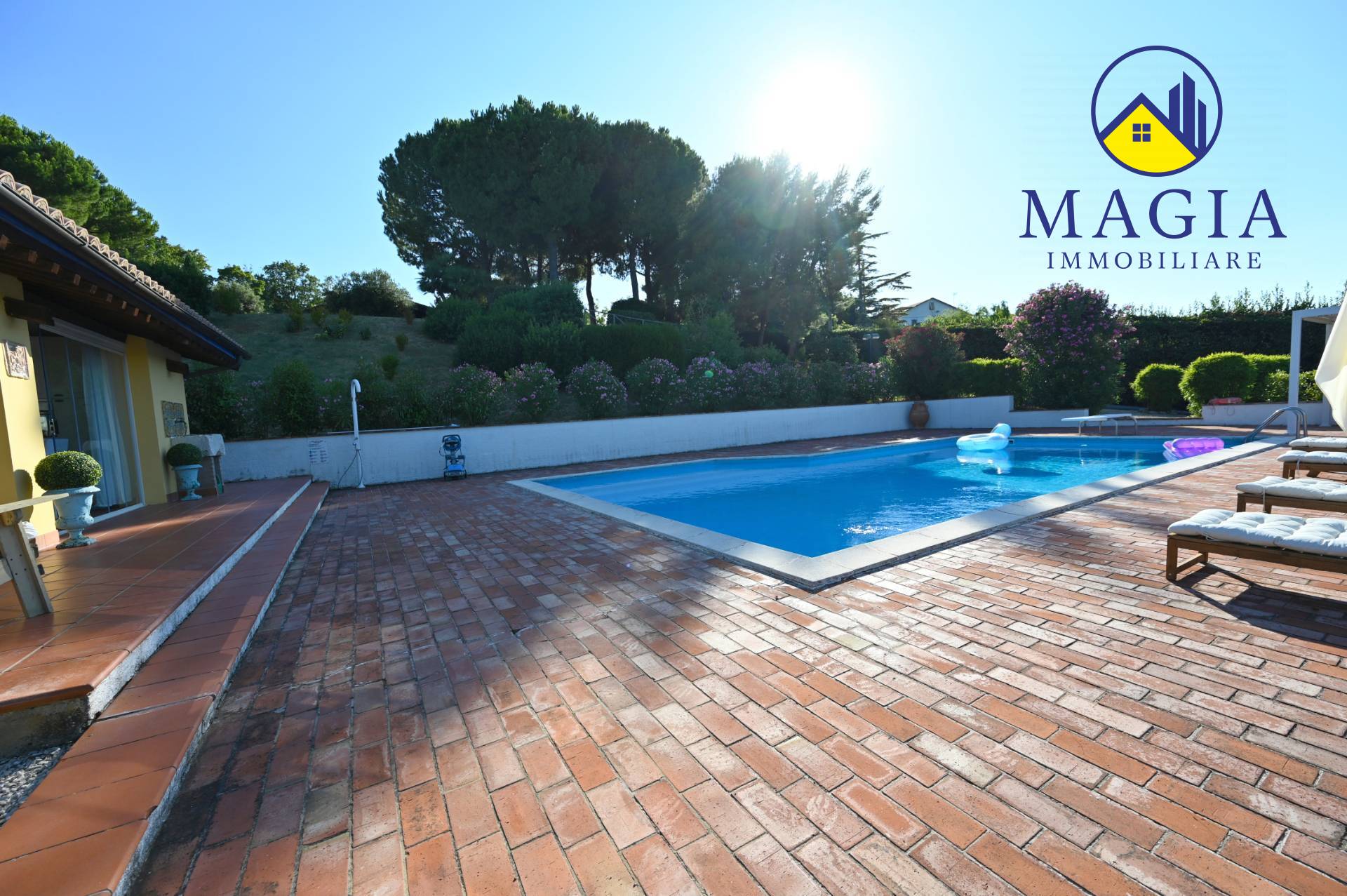 Il cuore della proprietà è la meravigliosa piscina, ideale per rilassarsi nelle giornate estive, immersi in un panorama naturale unico. Il terreno di circa 7.000 mq che circonda la Villa offre privacy, ampi spazi verdi e potenzialità per coltivazioni, orti, o area giochi.