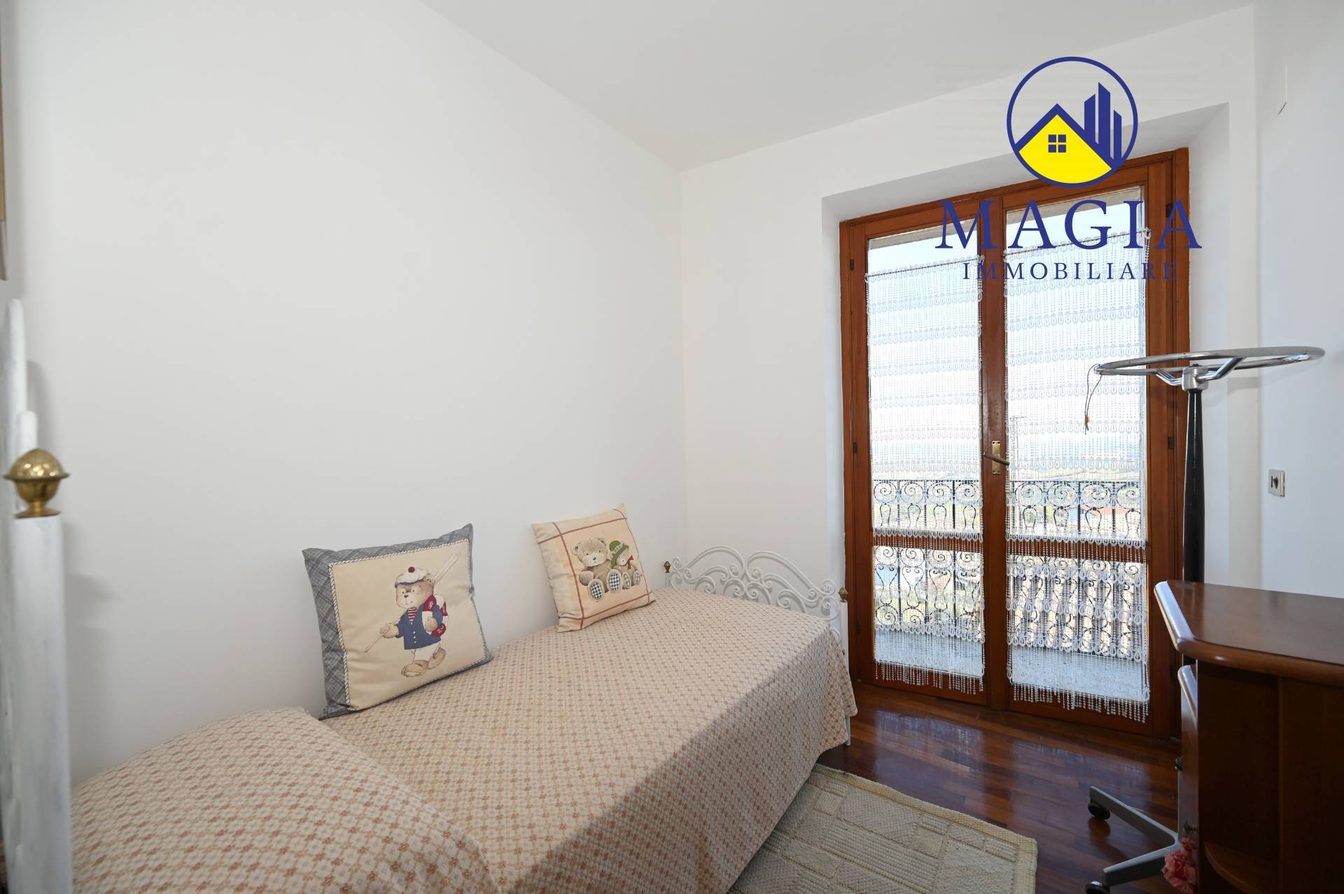 - Tre camere pavimentate in parquet (due matrimoniali + una singola/studio)