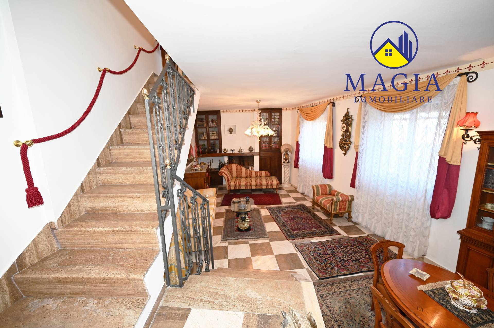 Carattere, luce e tradizioneL’abitazione conserva il suo fascino originario grazie alle finiture tipiche, alle finestre e persiane in legno e alle soglie in travertino, materiali che restituiscono calore e identità.