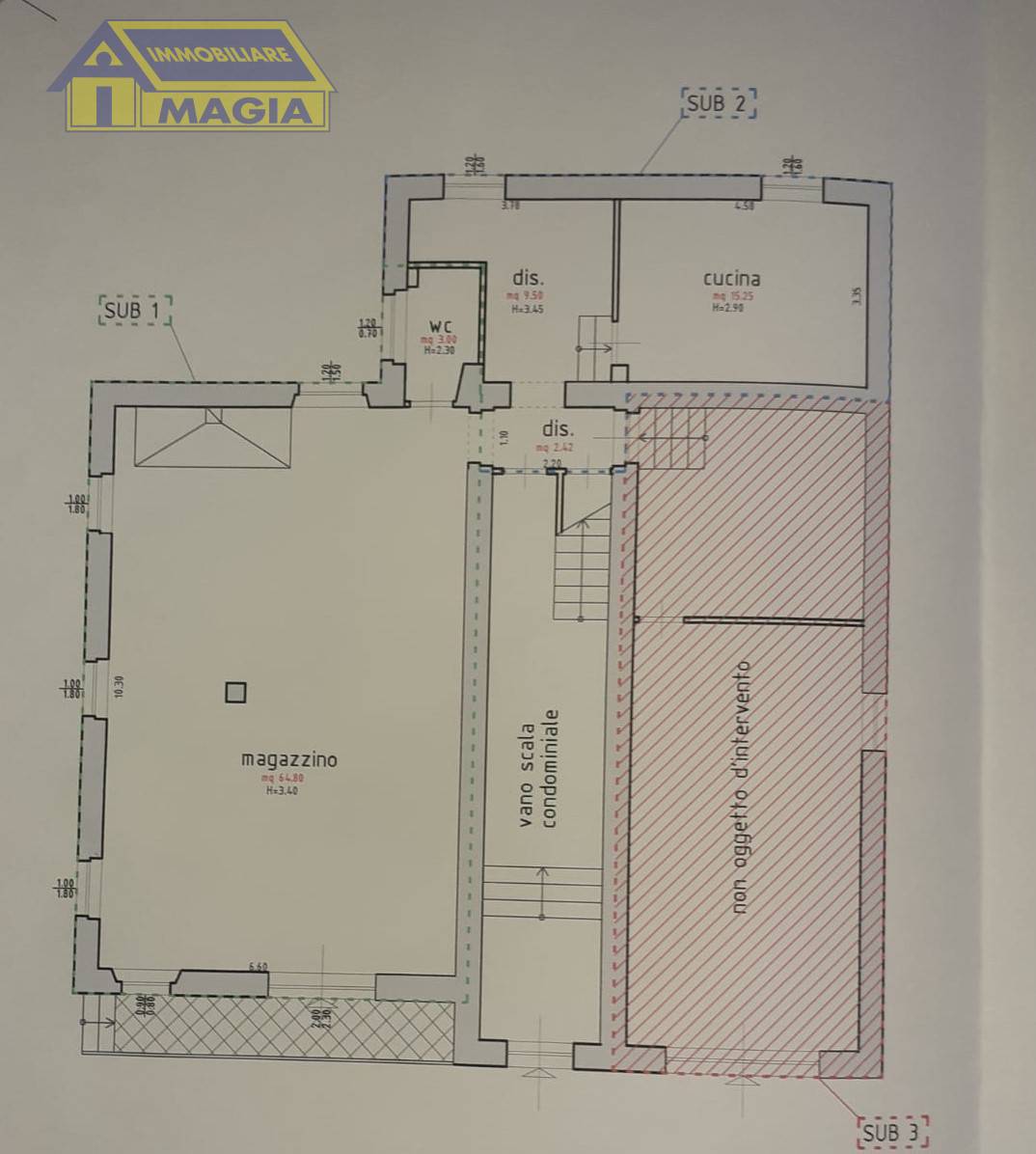 appartamento pianto rialzato + locale adiacente h interna mt 4,40